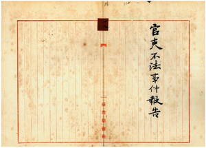 一八 塩水港庁北門嶼支庁巡査山村五郎ト警部補安達市之助ニヨル塩水港庁学甲堡渓底リョ庄陳藤ノ不法逮捕及ヒ傷害致死ノ警察官吏不法事件ニ関シ、山村ニ不法逮捕禁錮三箇月執行猶予一年、安達ニ傷害致死懲役一年執行猶予一年ノ判決ニ関スルノ件