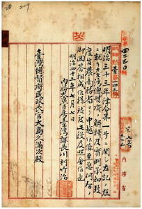 二〇 外国人土地取得ニ関スル明治三三年一月律令第一号ノ解釈及ヒ実例ニ関シ内務大臣官房台湾課長川村竹治ヨリノ照会ニ付キ回答ノ件