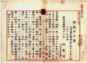 三 匪徒刑罰令違反ニ依リ台中地方法院ニテ有期徒刑一二年ニ処セラレ台中監獄ニ於テ服役中ノ台中庁藍興堡台中街頼万得ヲ特赦放免ノ件