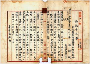 一 匪徒刑罰令違反ニ依リ台中地方法院ニテ重懲役一一年ノ刑ニ処セラレ台中監獄ニ於テ服役中ノ彰化庁武西堡崙仔庄張朝枝ヲ特赦放免ノ件(1909-03-31~1909-09-03);匪徒刑罰令違反ニ依リ台北地方法院台中出張所ニテ重懲役九年ノ刑ニ処セラレ台中監獄ヲ仮出獄中ノ彰化庁武西堡崙仔庄張羅漢脚ヲ特赦放免ノ件(1909-06-19~1909-09-03)