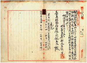 二三 蕃薯リョ庁長石橋亨ノ稟申ニ依リ蕃薯リョ公学校ヘ手工科加設認可ノ件(指令第一六〇四号)