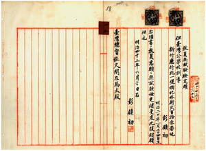 一八 新竹庁管内樹砥林公学校勤務台湾公学校訓導彭鎮初ノ台湾公学校訓導無試験検定出願ニ付キ教員免許状授与ノ件