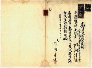 五 元岩手県東磐井郡赤萩小学校訓導兼校長門間幸造ノ台湾小学校本科正教員無試験検定出願ニ付キ教員免許状授与ノ件