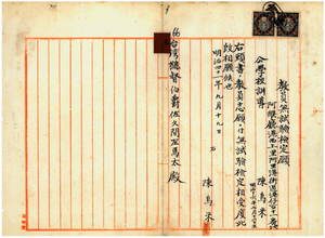 七 阿緱庁管内阿里港公学校勤務台湾公学校訓導陳烏米ノ台湾公学校訓導無試験検定出願ニ付キ教員免許状授与ノ件