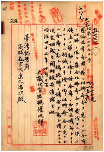 四一 大蔵次官若槻礼次郎ヨリ受恩給及年金者ノ集合仕払ニ対スル振換払手続ニ付キ通牒ノ件