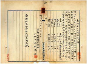 一一 台湾建物株式会社支配人木村泰治ヨリ願出ノ基隆街土名哨船頭所在貸下地転貸認可ノ件(指令第一六三五号)