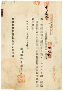 一〇 彰化庁長小松吉久ノ稟申ニ依リ土地台帳氏名誤謬ニ付キ訂正方認可ノ件(指令第二八九二号)