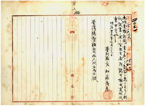 八 台北庁長加藤尚志ノ稟申ニ依リ土地台帳ニ登録セル業主氏名誤謬ニ付キ変更並ニ訂正方認可ノ件(指令第三五二三号)