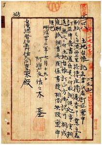 三 阿緱庁長佐々木基ヨリ稟申ノ土地台帳氏名誤謬ニ付キ訂正方認可ノ件(指令第三六八二号)