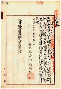 五 台北庁長加藤尚志ノ稟申ニ依リ土地台帳登録業主氏名誤謬ニ付キ訂正方認可ノ件(指令第五〇〇八号)