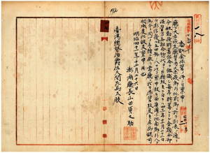 一七 澎湖庁長山田寅之助ノ稟申ニ依リ大赤崁支庁内ノ大赤崁・島嶼・小赤崁・瓦琉・港仔・岐頭・鎮海・港尾・城前・中墩・後リョ・通梁・大倉ノ各郷ニ於テ組織シタル勤倹貯蓄組合ノ委託金保管方認可ノ件(指令第二三八号)(1908-12-26~1909-01-21);澎湖庁長山田寅之助ノ稟申ニ依リ明治四二年一月二一日付指令第二三八号ニヨリ認可ノ勤倹貯蓄組合中鎮海郷土名員分ヲ鎮海郷勤倹貯蓄組合ヨリ分離並ニ、一部組織ノ変更ニ付キ報告ト認ムル旨財務局長ト総務局長ヨリ通知ノ件(1909-08-25~1909-09-09)