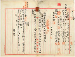二五 逓信省通信局長トノ協議ニ基キ内地台湾樺太相互間新聞電報取扱開始ニ付キ明治四〇年三月府令第一四号中第一五条及ヒ第一九条ヲ削除ノ件(府令第四三号)