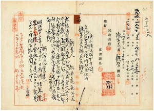 一四 船井亀喜ト加茂川市太郎へ台北庁管内ノ石炭鉱区増減及修正鉱区図下付ノ件(指令第三九六五号)