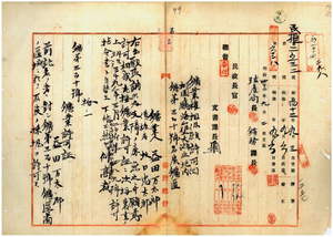 三 益田万太郎ヘ桃園庁管内ノ石炭鉱区採掘願提出ニ付キ、明治三九年三月二日付第四八九号許可指令書ト引替ニ本鉱業許可証ヲ下付(指令第四二〇四号)シ、坂口忠太郎ヘ本鉱業権ノ一番書入ヲ許可ノ件(指令第四二〇五号)