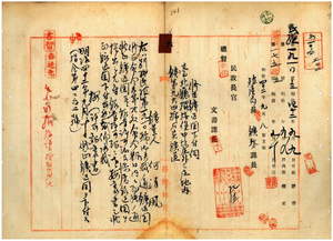 六 何清風ハ台北庁管内ノ石炭鉱区採掘ヲ願出タルモ、実地調査ノ結果再度訂正ノ上出願スル旨ヲ命シ(七月一二日発送)タルニ付キ、何清風ヘ台北庁管内ノ石炭鉱区出願地訂正願許可ノ上修正鉱区図下付ノ件