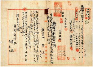一四 黄濕・黄赤九・李江海ヘ台北庁管内ノ鉱区分割願許可(指令第五一九八号)ノ上許可書下付ノ件(指令第五一九九号)