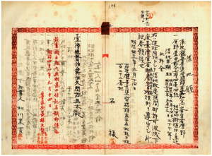 一二 石様ヘ想思樹植樹ノ為メ南投庁集集堡柴橋頭庄土名知高崙ノ官有原野年期貸渡許可ノ件(指令第四三二九号)