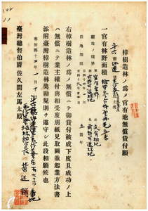 黃廷翰樟樹造林ノ為官有地無償貸付ノ件