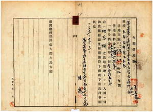 二五 陳亮ヘ想思樹栽培ノ為メ蕃薯リョ庁嘉祥内里南安老庄ノ官有原野年期貸渡ノ件(指令第二〇三三号)