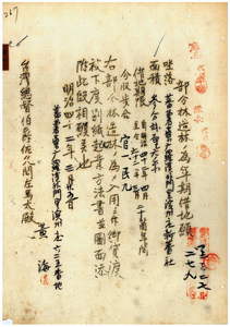 二六 黄海ヘ部分林造林ノ為メ蕃薯リョ庁羅漢外門里渓州庄新蕃社ノ官有原野年期貸渡ノ件(指令第二〇三二号)