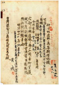 三三 黄成ヘ部分林造林ノ為メ蕃薯リョ庁羅漢外門里渓州庄ノ官有原野年期貸渡ノ件(指令第二〇六一号)