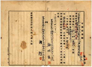 一七 謝明宗ト許輝ヘ想思樹栽培ノ為メ蕃薯リョ庁楠梓仙渓東里山杉林庄官有原野ノ年期借地願許可ノ件(指令第二五〇五号)