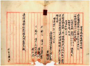 五 黄梓盛・黄梓文・黄正興ヘ想思樹植樹ノ為メ南投庁南投堡分水リョ庄字番仔迂山ノ官有原野年期貸下処分ノ件(指令第三四〇〇号)