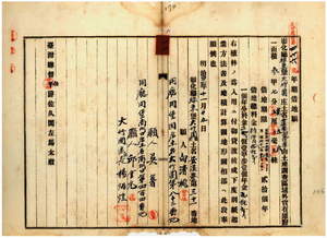 一一 白清桃・呉薯・邱金元ヘ想思樹植樹ノ為メ彰化庁線東堡大竹囲庄土名安渓リョ元客仔リョ山ノ官有地年期貸渡ノ件(指令第三五六七号)(1908-11-25~1909-08-18);台中地方法院判官佐藤乙二ヨリ白清桃・呉薯・邱金元ノ山地業主権確認事件ニ付キ関係書類ノ回送方依頼並ニ返戻催促ノ件(1909-11-30~1910-10-07)