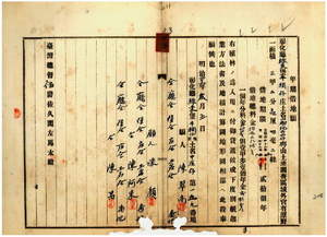 二三 陳翠南・陳顔・陳阿東・陳昌ヘ植樹ノ為メ彰化庁線東堡牛稠仔庄土名山脚地内山仔脚山ノ官有原野年期貸渡ノ件(指令第四〇三六号)
