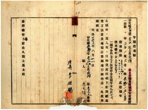 二七 廖大情ヘ植樹ノ為メ彰化庁燕霧上堡秀水庄土名荘雅ノ官有原野年期貸渡ノ件(指令第四一一一号)