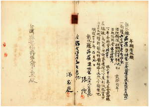 七 張頂ト張家庭ヘ植林ノ為メ彰化庁猫羅堡快官庄冬瓜山ノ官有原野年期貸渡ノ件(指令第四二〇二号)