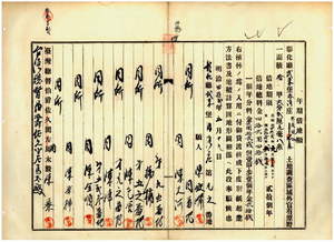 四 陳鉄嘴・陳天河・楊桶・陳乞食・陳陣・陳全順・陳条輝・陳察ヘ植樹ノ為メ彰化庁武東堡内湾庄無尾坑山ノ官有原野年期貸渡ノ件(指令第四三七〇号)