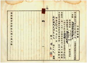 八 陳永禄ヘ植樹ノ為メ彰化庁武東堡太平庄土地公坑ノ官有原野年期貸渡ノ件(指令第四三八六号)