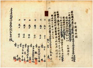 一二 李英・李田・李敏卿・李盛・李金吉・李軒・李矮ヘ植樹ノ為メ彰化庁燕霧上堡橋仔頭庄土名湾仔口十二份山ノ官有原野年期貸渡ノ件(指令第三七一四号)
