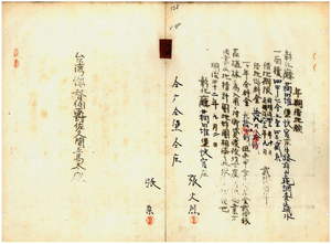 一四 張火烈ト張宗ヘ植樹ノ為メ彰化庁猫羅堡快官庄牛路萍山ノ官有原野年期貸渡ノ件(指令第四六五一号)