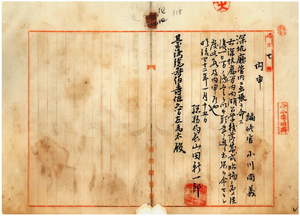 四四 台湾総督府民政部総務局長山田新一郎ヨリ台湾総督府編修官小川尚義ニ深坑庁管内内湖公学校落成式臨場ノ為メ出張ヲ命セラレ度キ旨内申ノ件