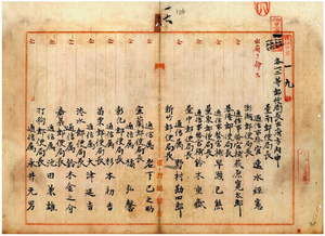 一六 台湾総督府民政部通信局長代理井村大吉ヨリ台南郵便局長台湾総督府通信事務官速水経憲・澎湖郵便局長台湾総督府通信事務官補萩原寛太郎・基隆郵便局長台湾総督府通信事務官補早瀬已熊・台東郵便局長台湾総督府通信事務官補鈴木重嶽・台中郵便局長台湾総督府通信属野村勘四郎・新竹郵便局長台湾総督府通信属岩下巳之助・宜蘭郵便局長台湾総督府通信属橘弘馨・彰化郵便局長台湾総督府通信属杉本初吉・苗栗郵便局長台湾総督府通信属大津延吉・淡水郵便局長台湾総督府通信属鈴木金之介・嘉義郵便局長台湾総督府通信属池田兼雄・打狗郵便局長台湾総