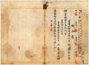 三〇 台湾総督府覆審法院長石井常英ノ内申ニ依リ台湾総督府法院判官安藤第三郎ヲ台南地方法院判官ニ補シ台南地方法院嘉義出張所詰ヲ命ス