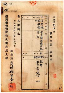 四四 台湾総督府民政部殖産局長代理福留喜之助ノ具申ニ依リ台湾総督府技師素木得一ニ害虫駆除予防監督ノ為メ深坑・桃園両庁管内ヘ出張ヲ命ス