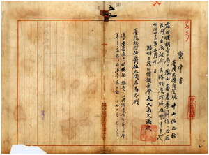 五五 臨時台湾旧慣調査会長大島久満次ヨリ台湾総督府警視中山佐之助ニ旧慣調査ノ為メ鳳山・蕃薯リョ・阿緱各庁管内ヘ出張ヲ命セラレ度キ旨稟申ノ件