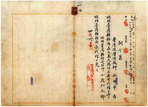 一四 民政長官ノ電令ニ依リ臨時台湾糖務局技師小花和太郎ノ臨時台湾糖務局長代理ヲ免シ、台湾総督府技師山田申吾ニ臨時台湾糖務局長大島久満次不在中ノ代理ヲ命ス