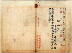 一八 台湾総督府通信局長代理井村大吉ノ内申ニ依リ事務官井村大吉ニ台湾総督府民政部通信局電務課長山本三次郎不在中ノ代理ヲ命ス