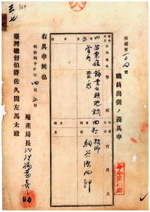 三七 台湾総督府民政部殖産局長代理福留喜之助ノ具申ニ依リ台湾総督府技師細谷源四郎ニ鉱業出願地調査ノ為メ苗栗庁管内ヘ出張ノ件