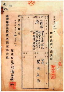 四八 台湾総督府民政部殖産局長代理福留喜之助ノ具申ニ依リ台湾総督府技師賀田直治ニ台東・宜蘭・深坑各庁管内ヘノ出張中ノ処用務ノ都合ニ依リ一時帰府ヲ命スルノ件[四〇も見よ]