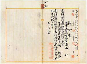 一二 台湾総督府民政部財務局長代理高山仰ノ内申ニ依リ台湾総督府事務官高山仰ニ民政部財務局長代理ヲ免シ、台湾総督府事務官峡謙斉ニ民政府財務局長小林丑三郎不在中ノ代理ヲ命ス