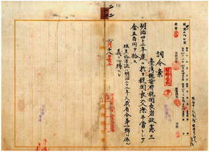 二二 台湾総督府税関長岩政憲三ニ税関長交際手当五百円ヲ給ス