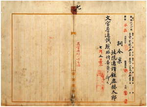 七 台湾総督府法院通訳鉅鹿赫太郎ニ文官普通試験臨時委員ヲ命ス