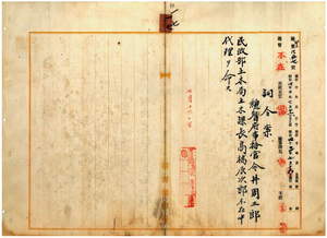 一七 台湾総督府民政部土木局長心得長尾半平ノ内申ニ依リ台湾総督府事務官今井周三郎ニ民政部土木局土木課長高橋辰次郎不在中ノ代理ヲ命ス