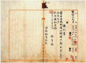 二七 台湾総督府秘書官ヨリ台湾総督府法院判官小野隆太郎七月二七日死去ノ旨内務秘書官ヘ通知ノ件[二六を見よ]