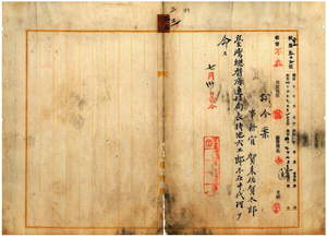 三三 台湾総督府事務官賀来佐賀太郎ニ台湾総督府民政部通信局長持地六三郎不在中ノ代理ヲ命ス
